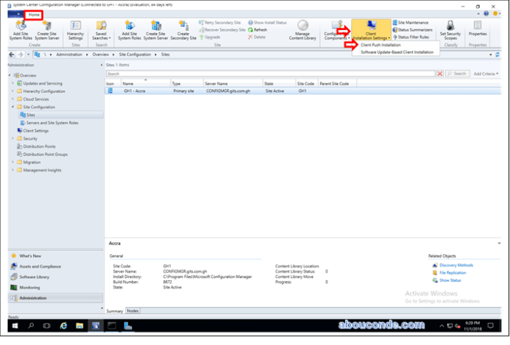 On the Home tab of the ribbon, in the Settings group, choose Client Installation Settings, and select Client Push Installation.