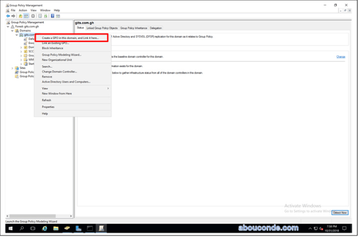 On DC, click on Server Manager, click on Tools, click Group Policy Management.