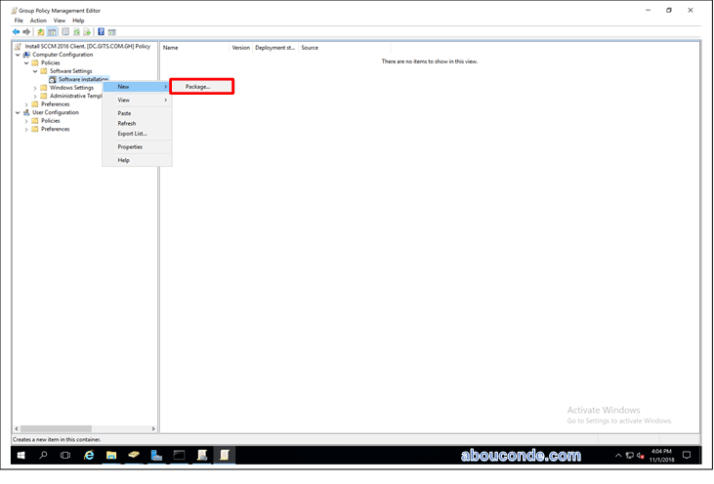 After configured the policie then you need to configure the SCCM 2016 Agent installation Software Package.