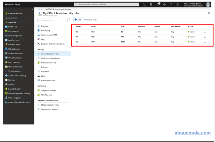 Under SETTINGS, select Inbound security rules and then select + Add,