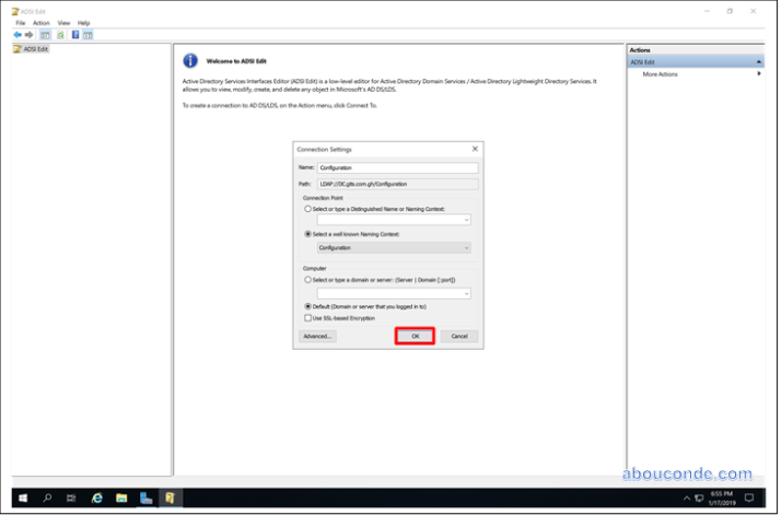 Right Click on ADSIEdit and Click Connect to