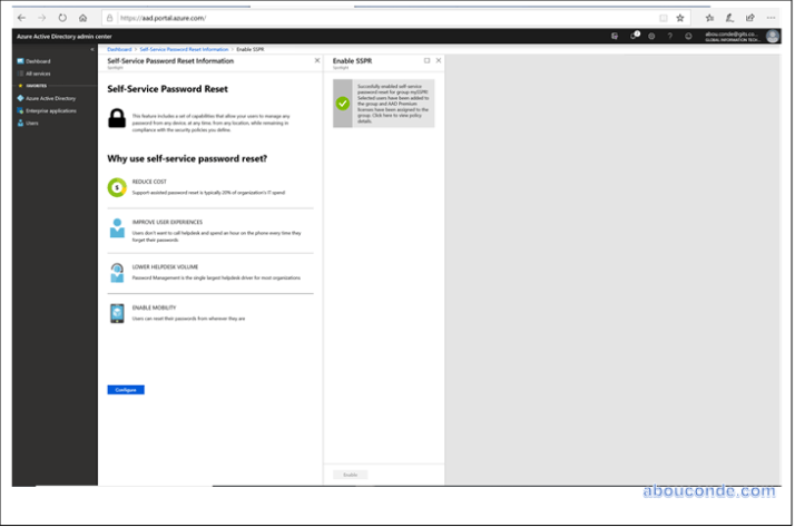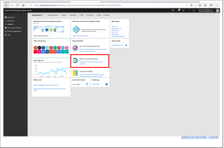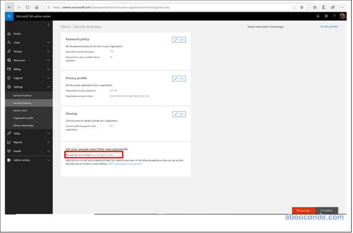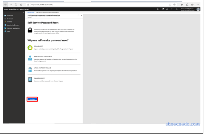 Under Let people reset their own passwords, choose Azure AD admin center.