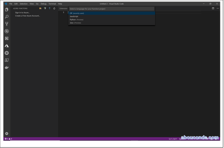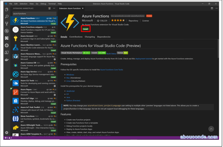 In Visual Studio Code, open Extensions and search for azure functions, or open this link in Visual Studio Code.