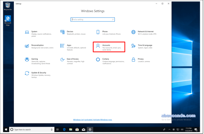 On Settings tab, click Accounts.