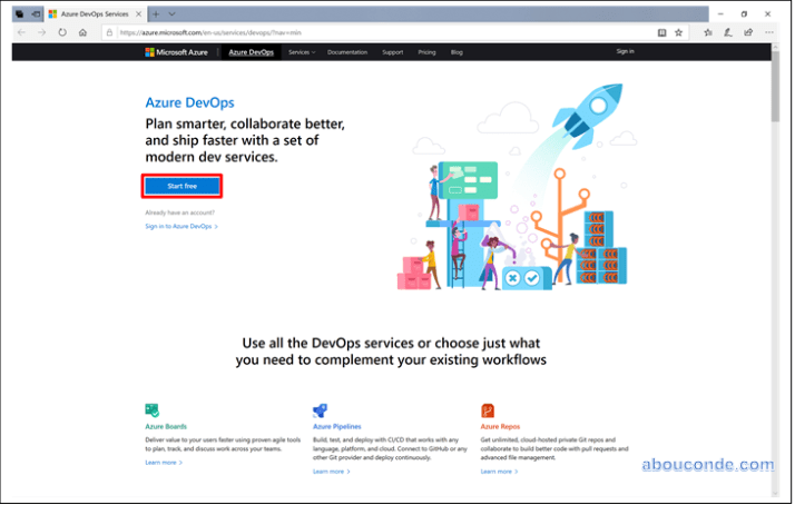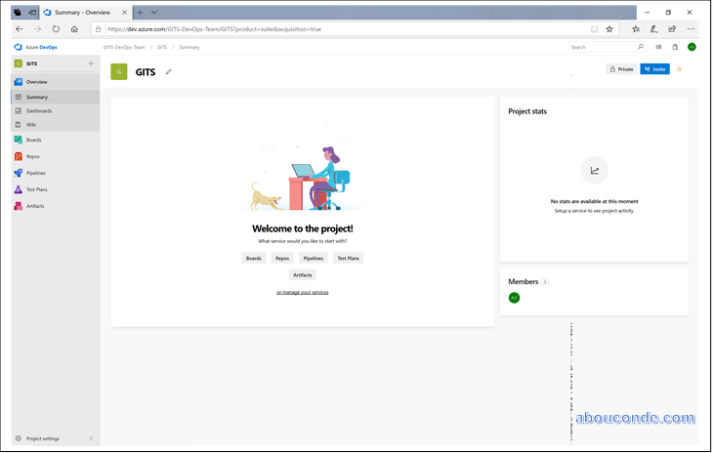 Browse to the Azure DevOps site at https://dev.azure.com.