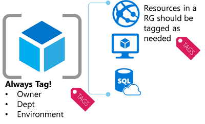 - Tags applied to the resource group are not inherited by the resources in that resource group.