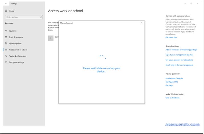 This blog post shows how to join your Windows 10 device on your Azure AD
