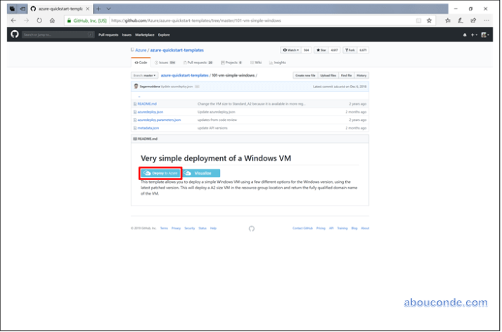 Browse to the GitHub site at: https://github.com/Azure/azure-quickstart-templates/tree/master/101-vm-simple-windows