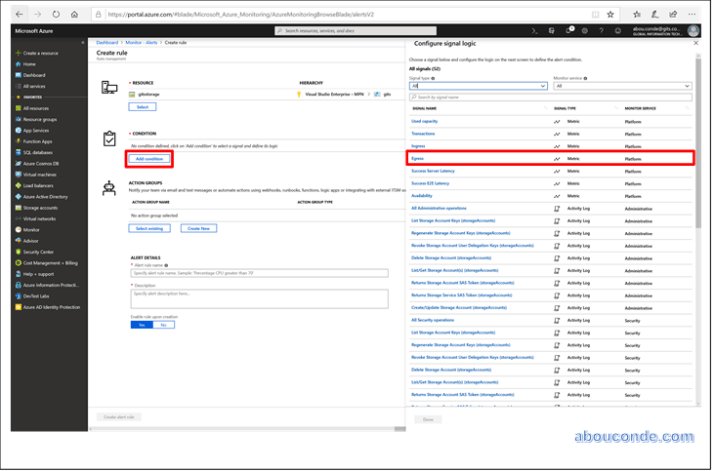 You will see a list of signals supported for the resource, select the metric you want to create an alert on.