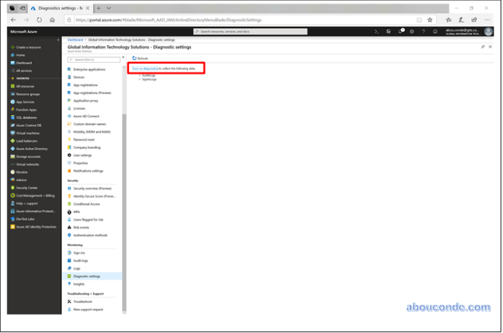 Select Azure Active Directory > Diagnostic settings.