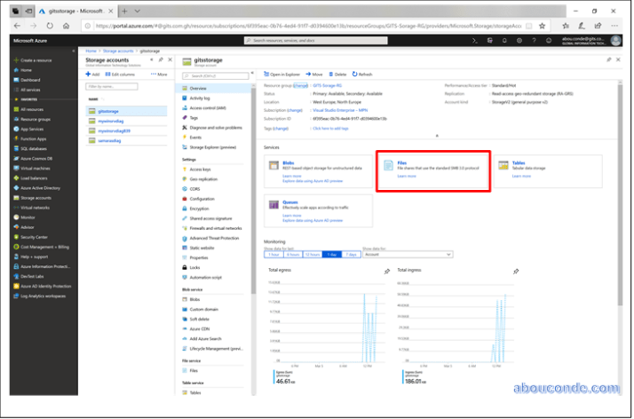 Go to the Storage Account blade on the Azure portal
