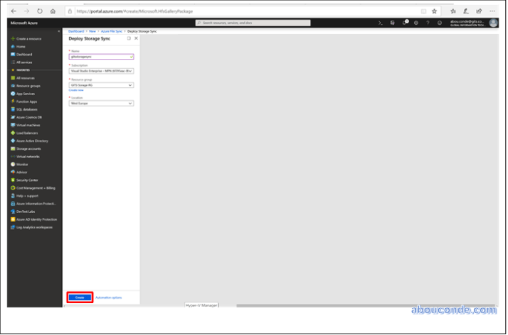When you are finished, select Create to deploy the Storage Sync Service.