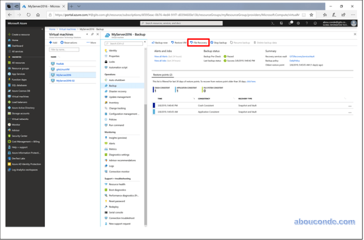 This blog post shows, how to recover files and folders from an Azure VM backup. Restoring files and folders is available only for Azure VMs deployed using the Resource Manager model and protected to a Recovery services vault.