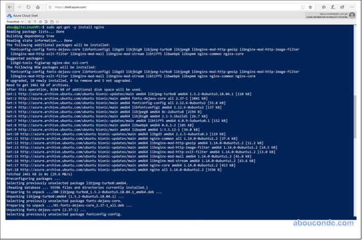 Use a web browser of your choice to view the default NGINX welcome page. Use the public IP address of your VM as the web address. The following example shows the default NGINX web site: