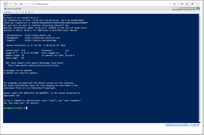 SSH to your VM as normal. Replace publicIpAddress with the public IP address of your VM as noted in the previous output from your VM: