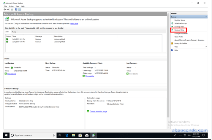 Open the Microsoft Azure Backup snap-in. If you don’t know where the snap-in was installed, search the computer or server for Microsoft Azure Backup.