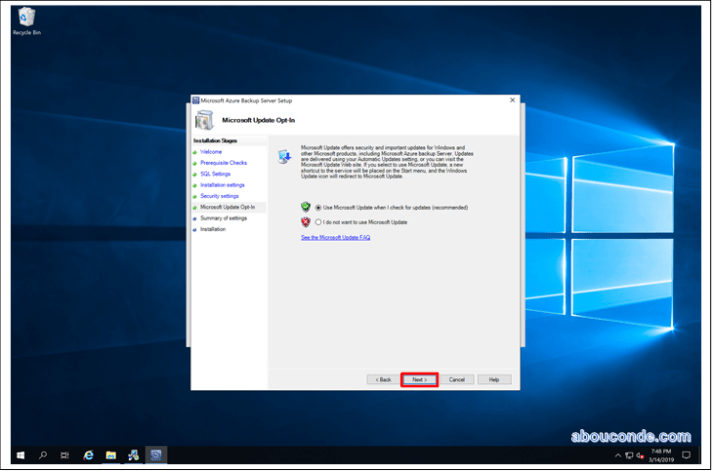 Select whether you want to use Microsoft Update to check for updates and click Next.