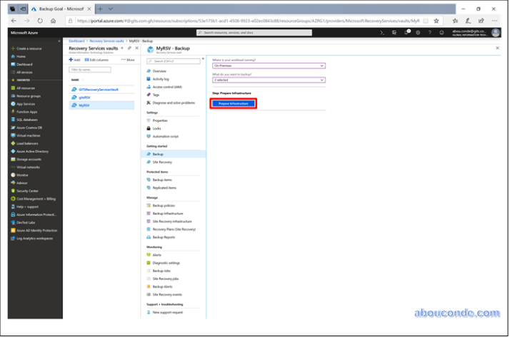 In the Backup Goal blade, from the Where is your workload running menu, select On-premises.
