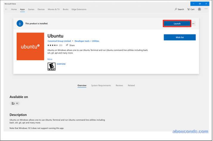 To complete the initialization of your newly installed distro, launch a new instance. You can do this by clicking the “launch” button in the Windows Store app, or launching the distro from the Start menu: