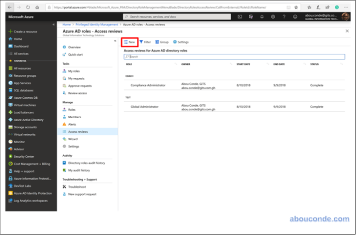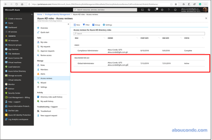 This blog post shows how to create access reviews for privileged Azure AD roles.