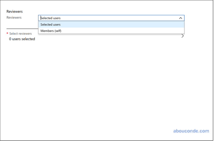 In the Reviewers section, select one or more people to review all the users. Or you can select to have the members review their own access.